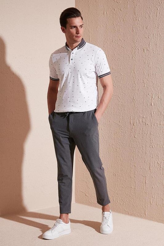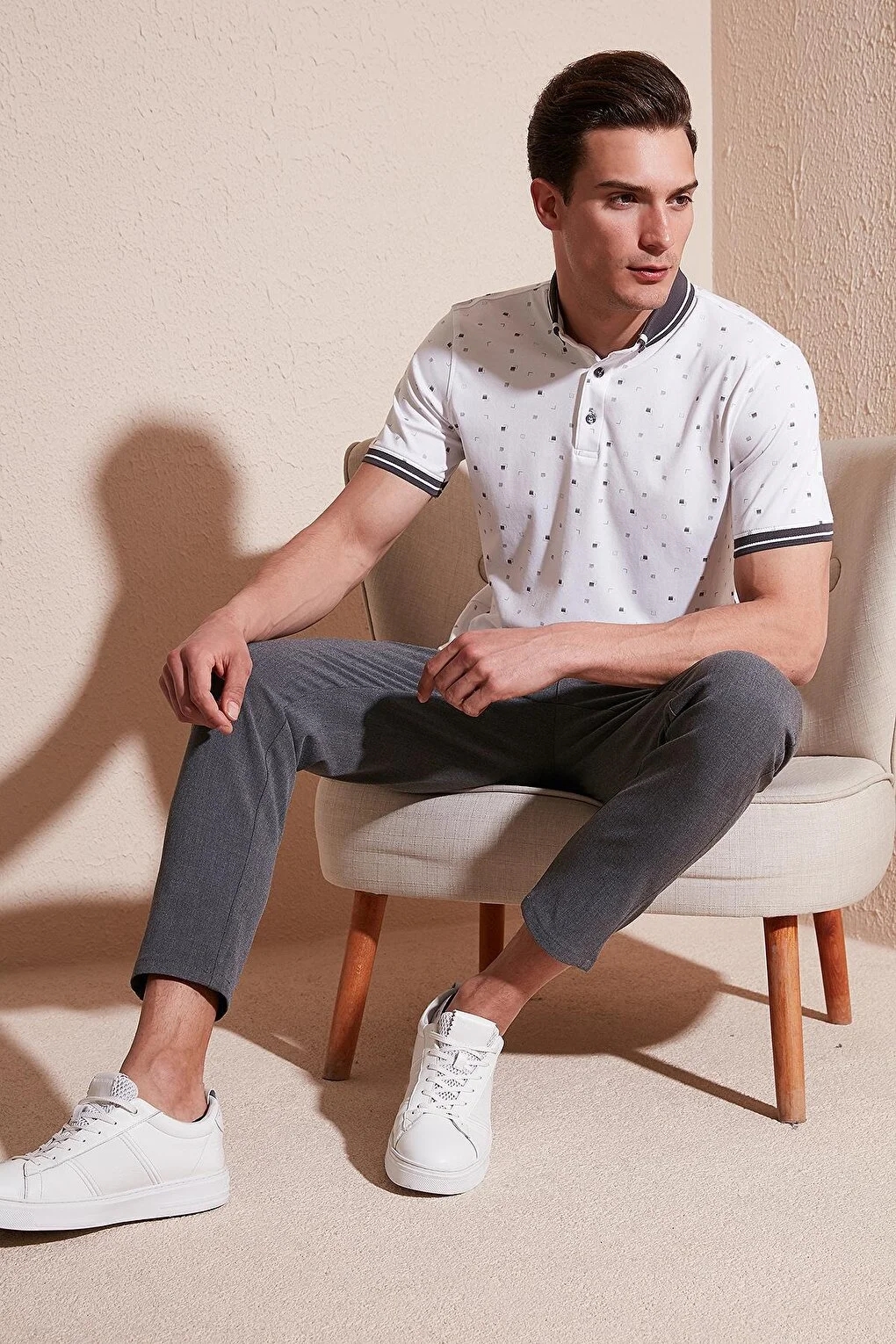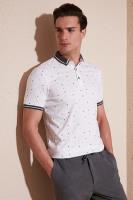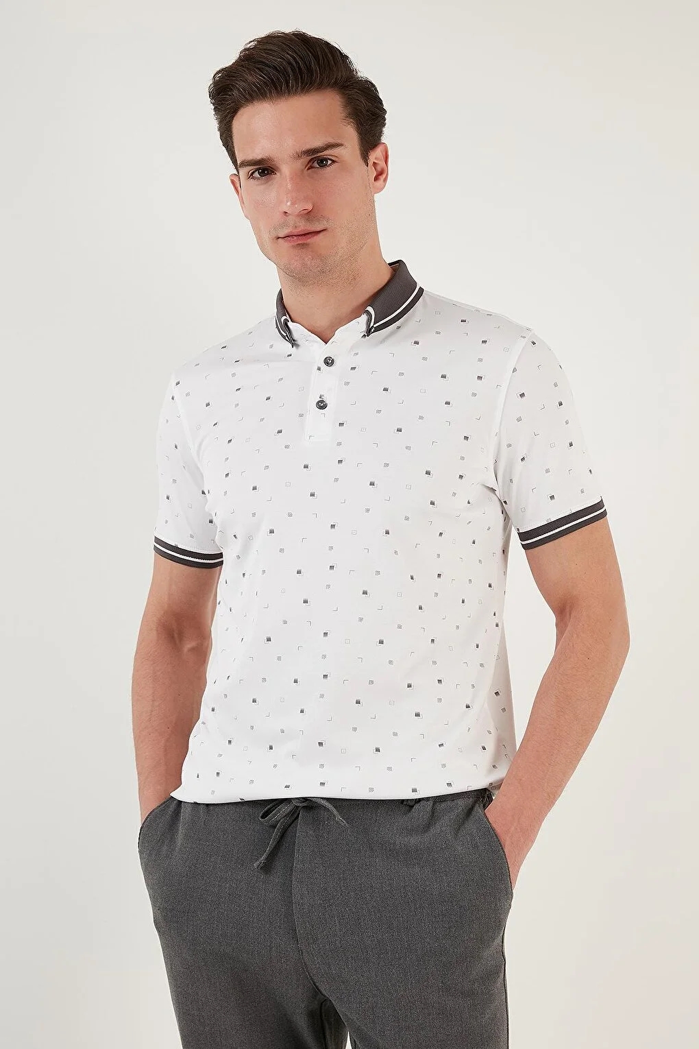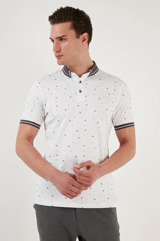 تی شرت مردانه یقه دار با طرح اسلیم فیت Buratti سفید