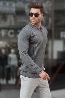 پلیور بافتنی مردانه یقه پولو زیپ دار MADMEXT ذغالی