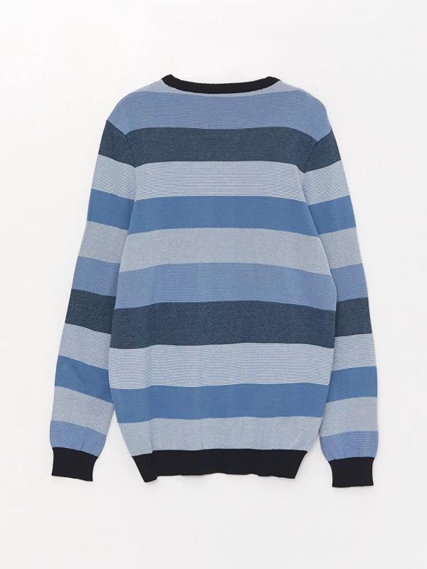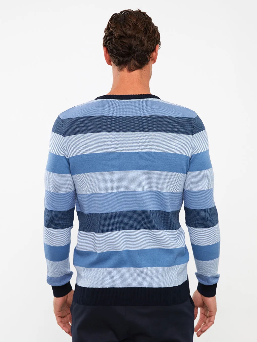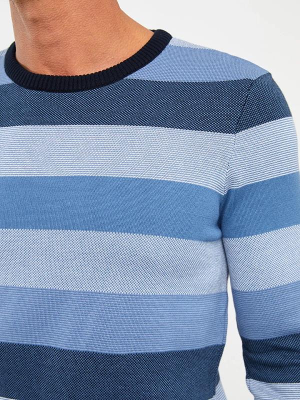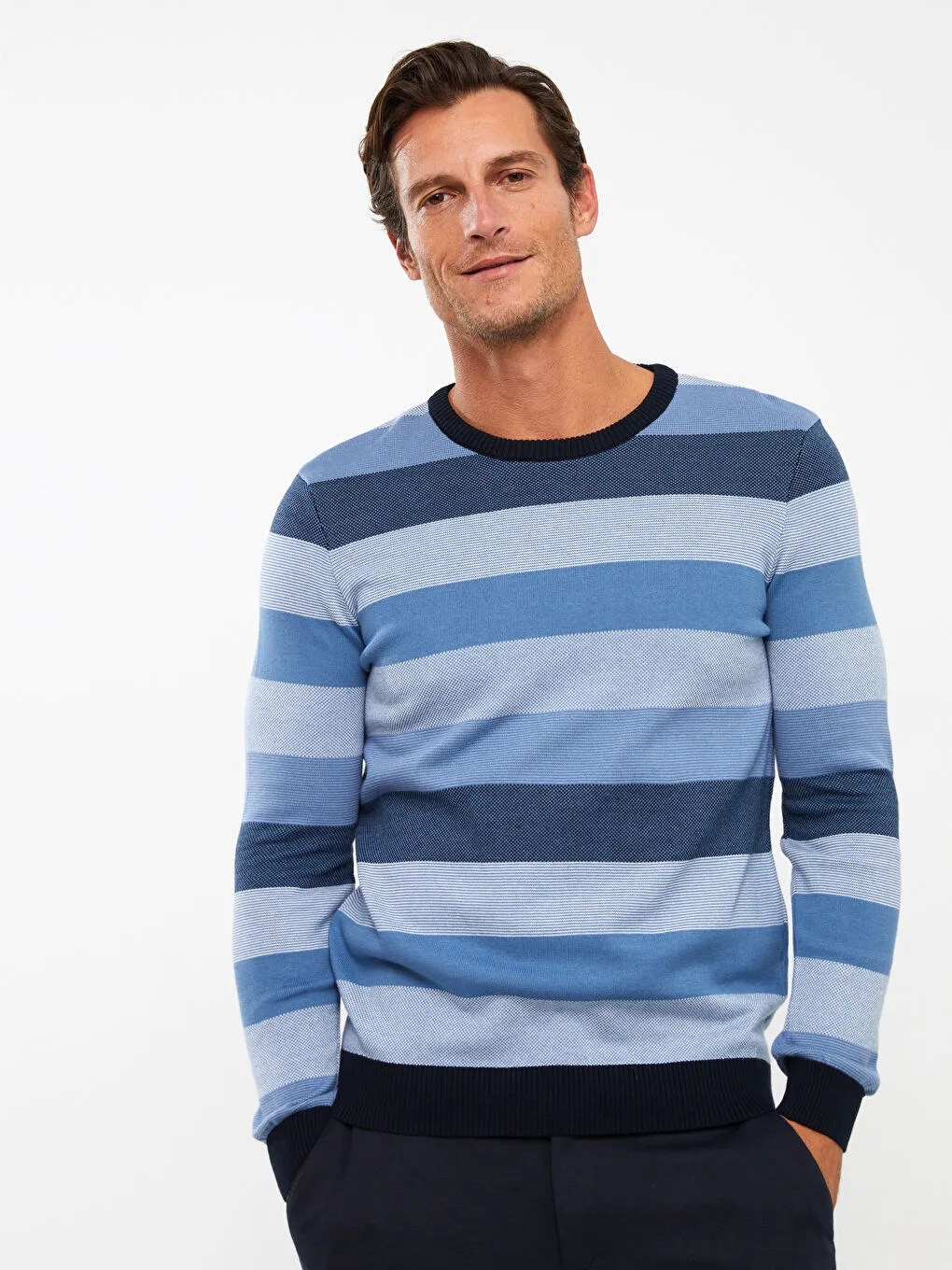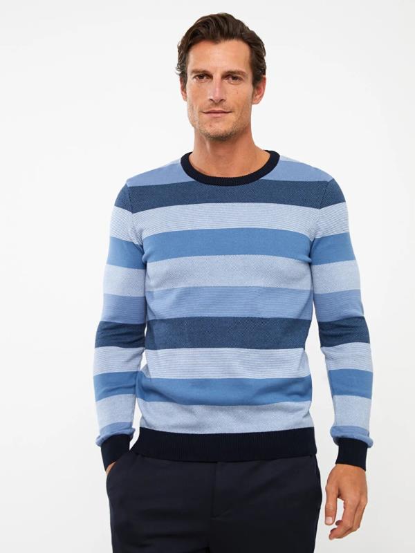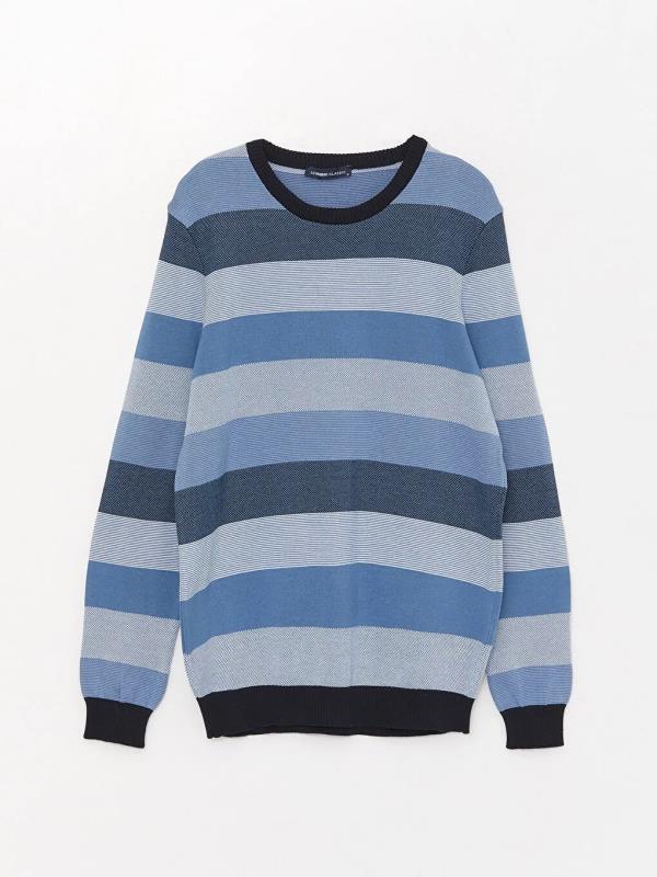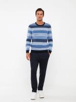 پلیور بافتنی مردانه راه راه آستین بلند یقه کرو LCWAIKIKI Classic آبی
