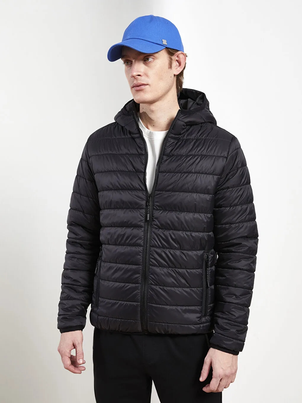 کاپشن پافر مردانه کلاهدار کلاسیک استاندارد LCWAIKIKI مشکی