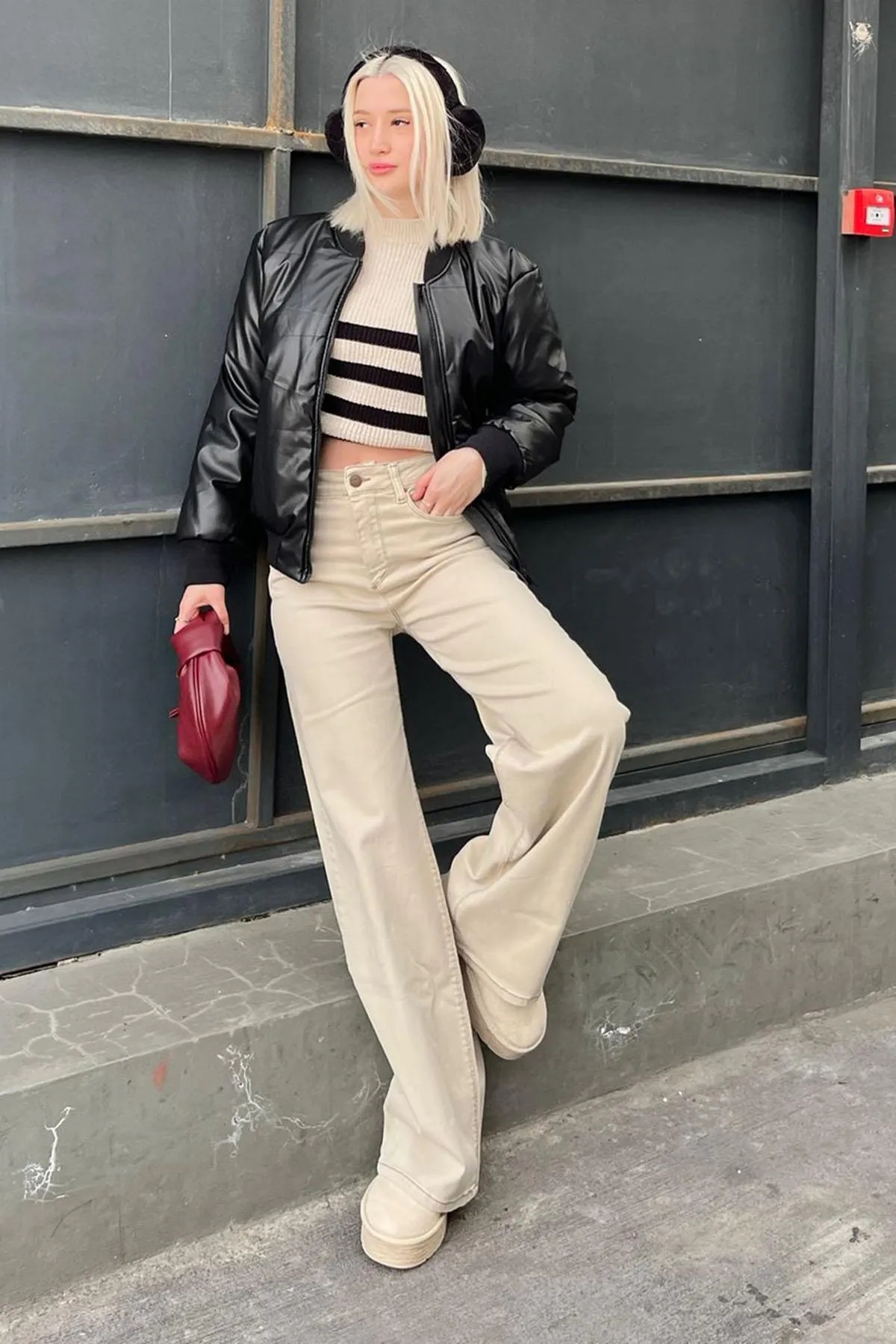 صفحه اصلی\همه شلوار جین ها\شلوار جین گشاد زنانه Madmext بژ