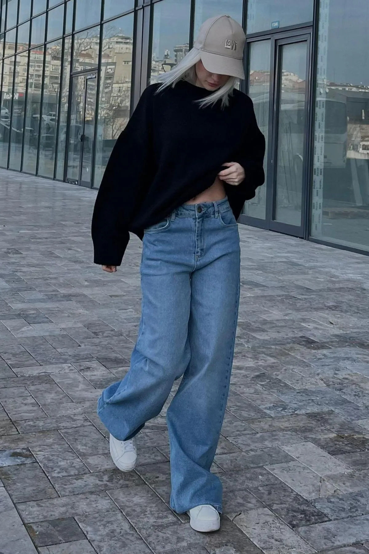 شلوار جین زنانه گشاد آبی کمرنگ XSIDE