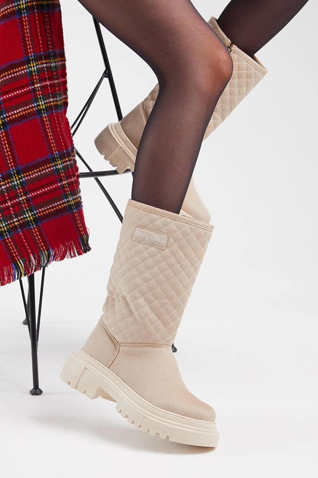 صفحه اصلی\همه بوت ها\چکمه بلند راحت طرح دار جیر زنانه TONNY BLACK کرم