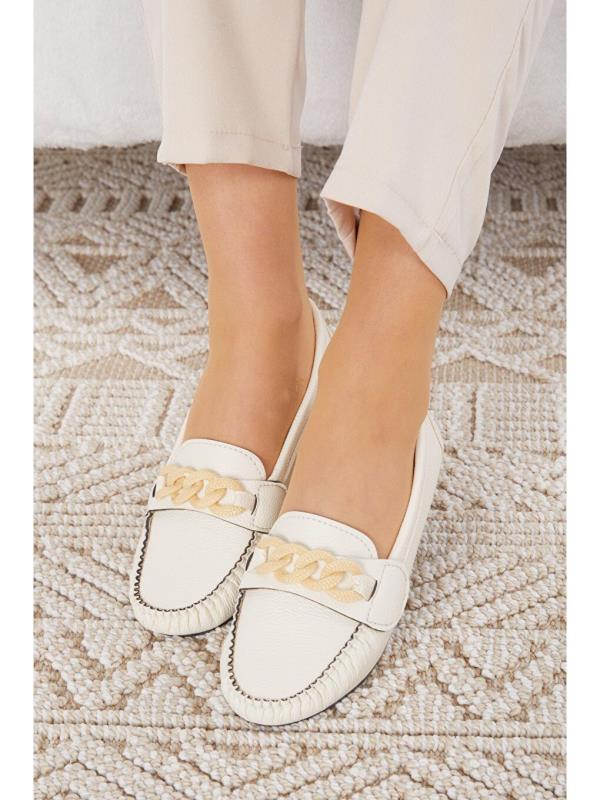کفش زنانه بالرین راحت زیره چرم ارتوپدی TOFiSA بژ