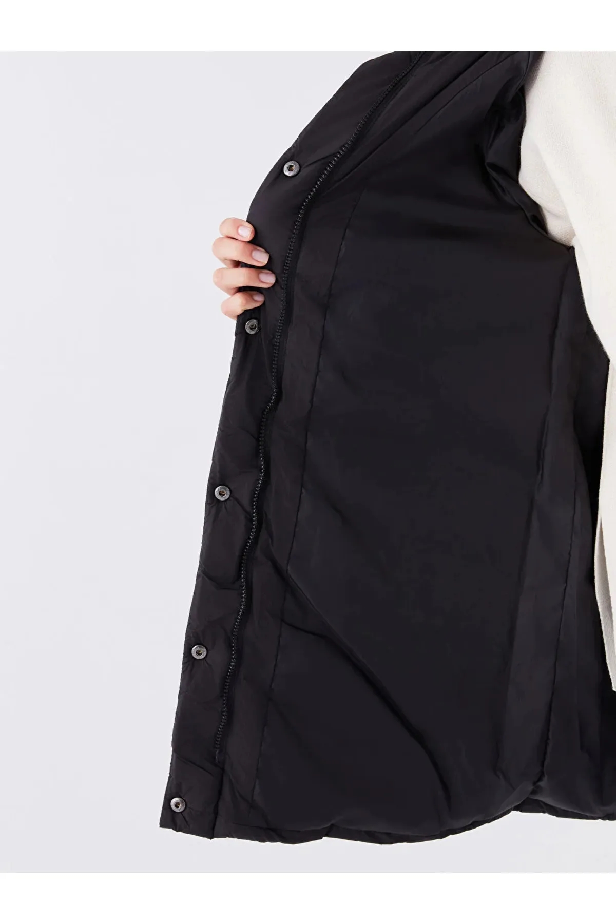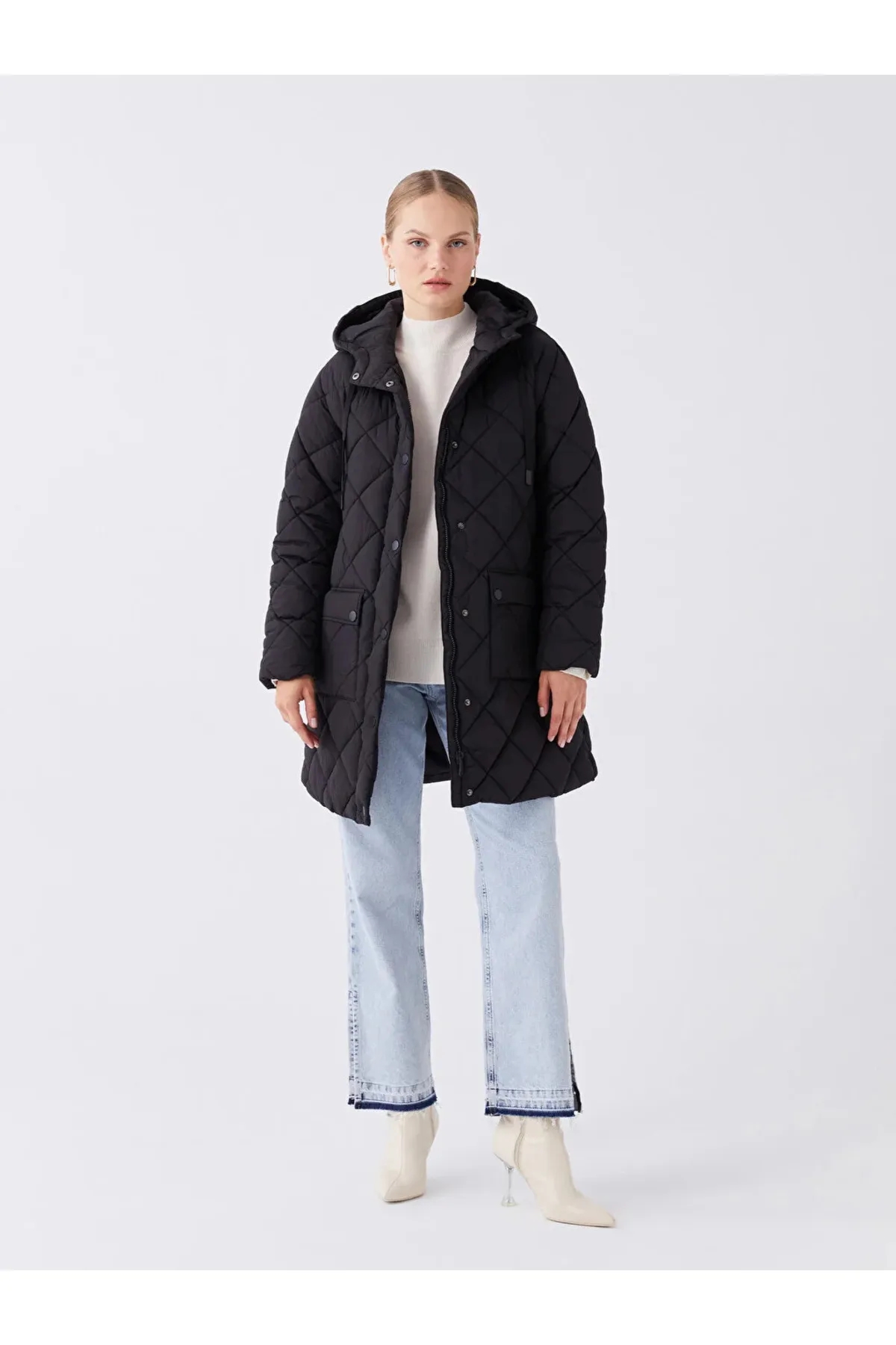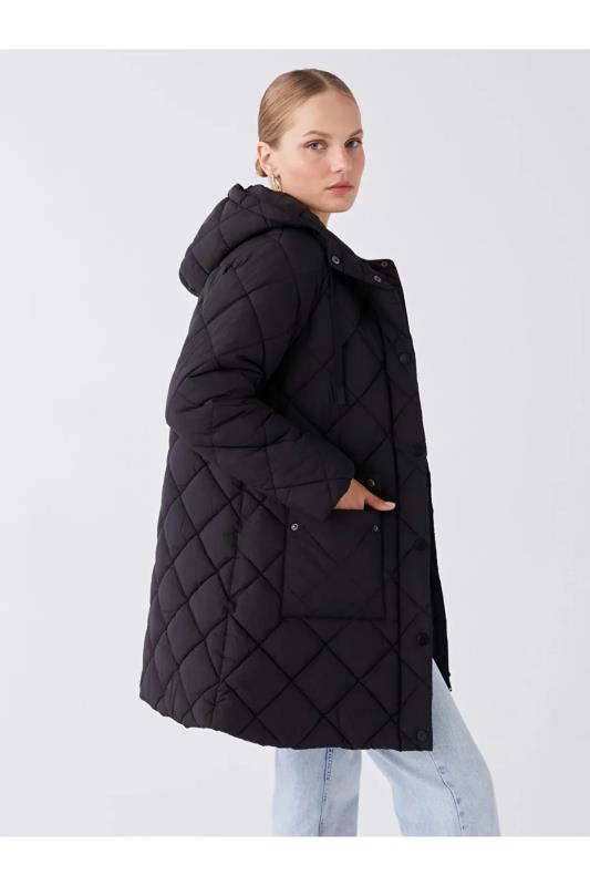 کاپشن پف دار زنانه کلاه دار LC Waikiki مشکی