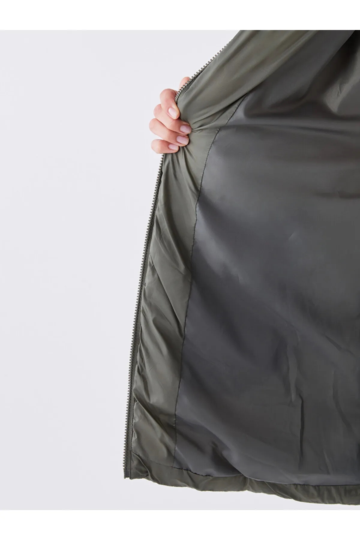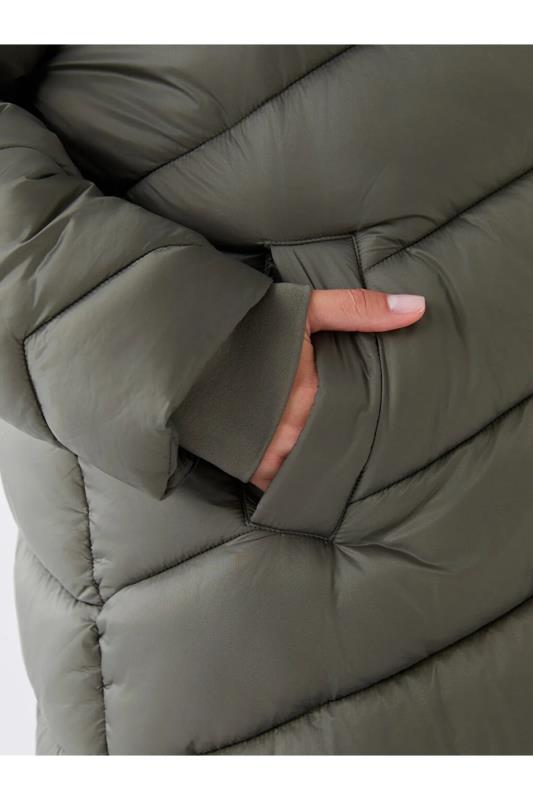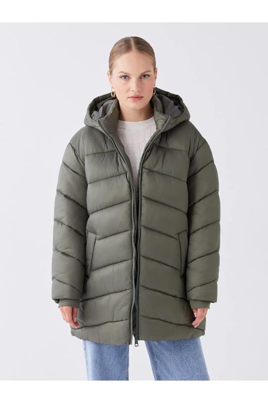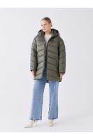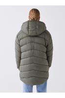 کاپشن زنانه آستین بلند ساده کلاهدار LC Waikiki خاکستری