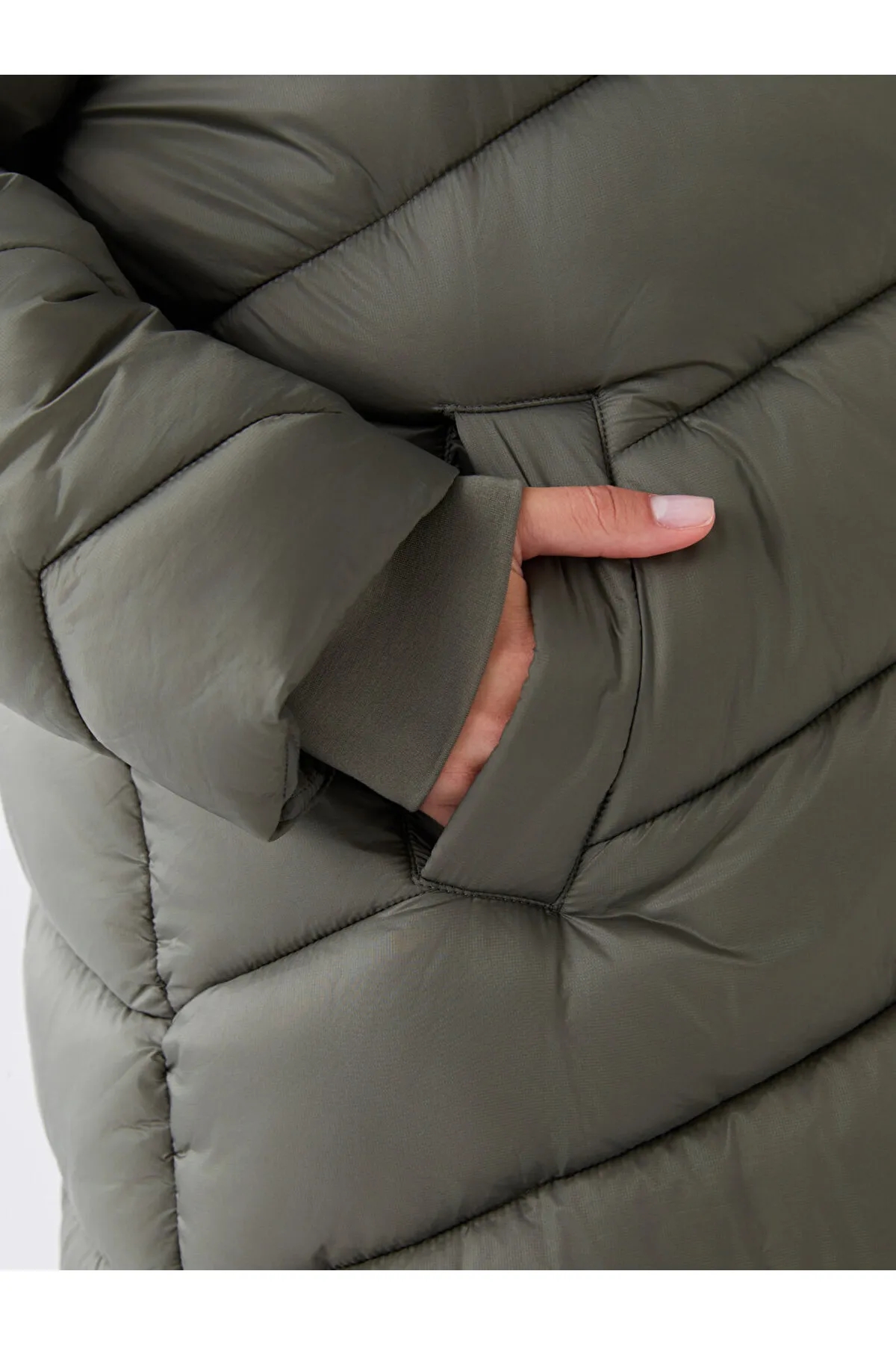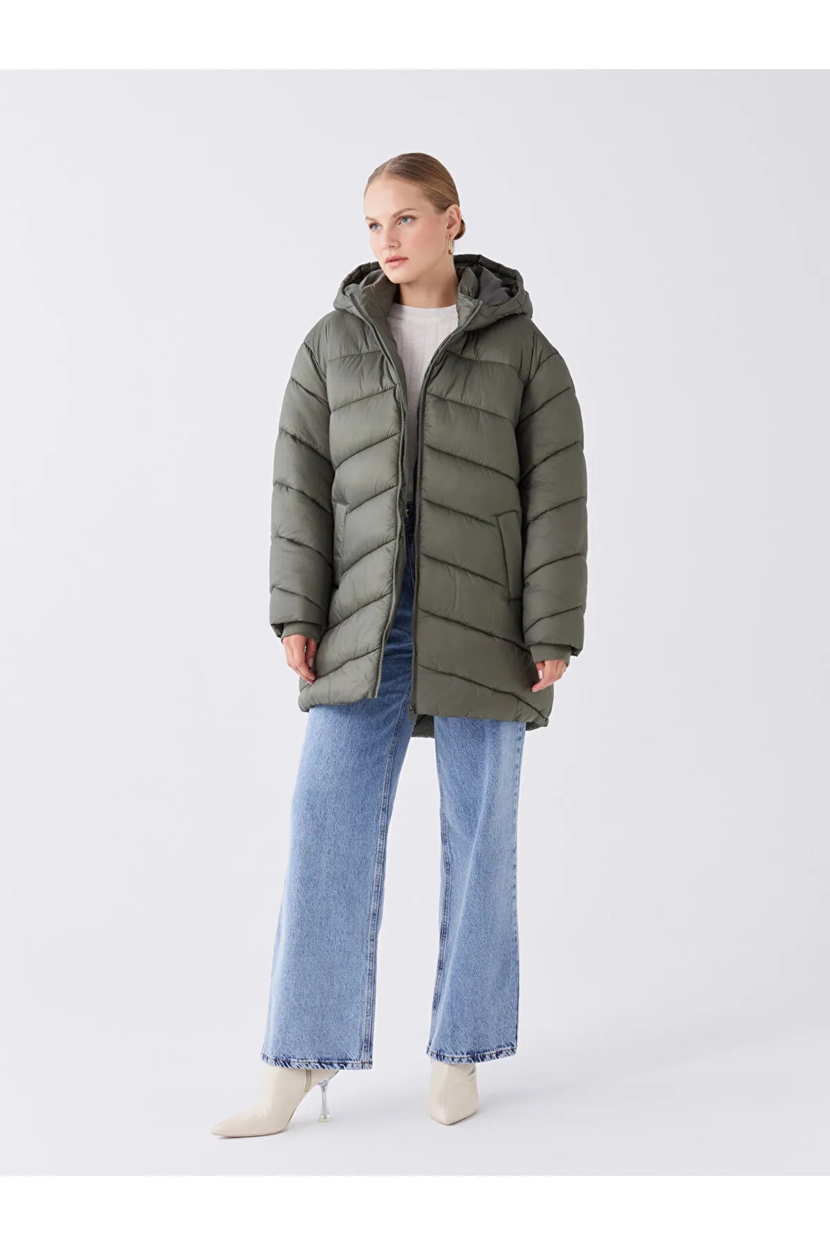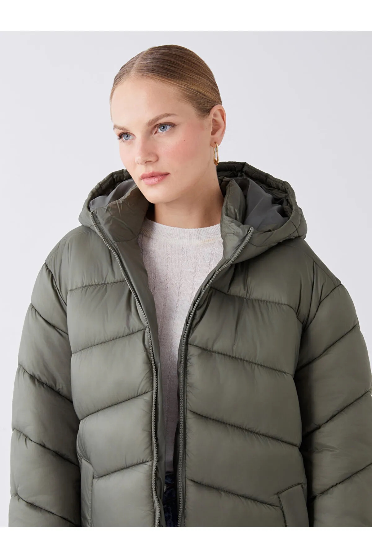 کاپشن پفی زنانه کلاه دار lc waikiki سفید شیری