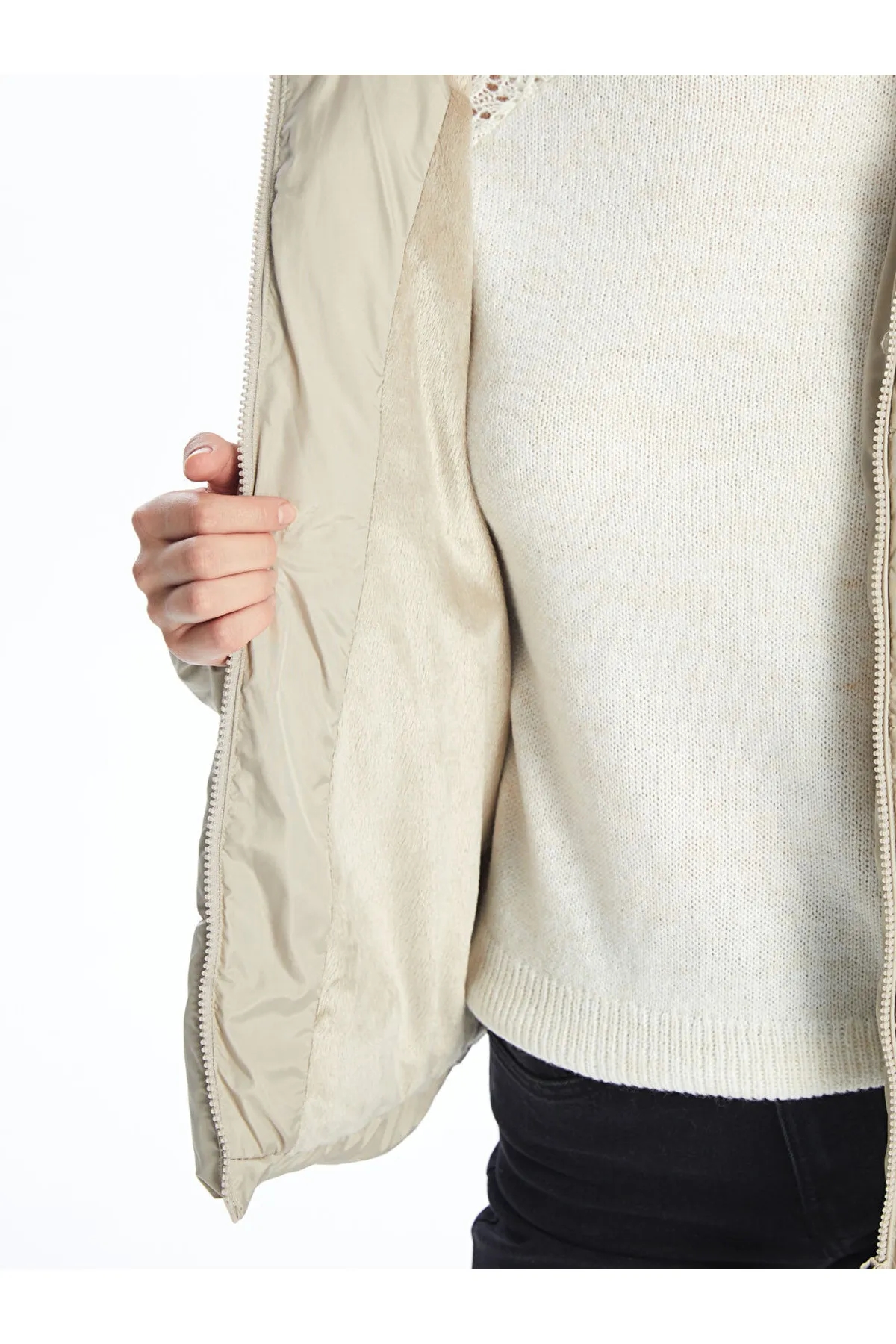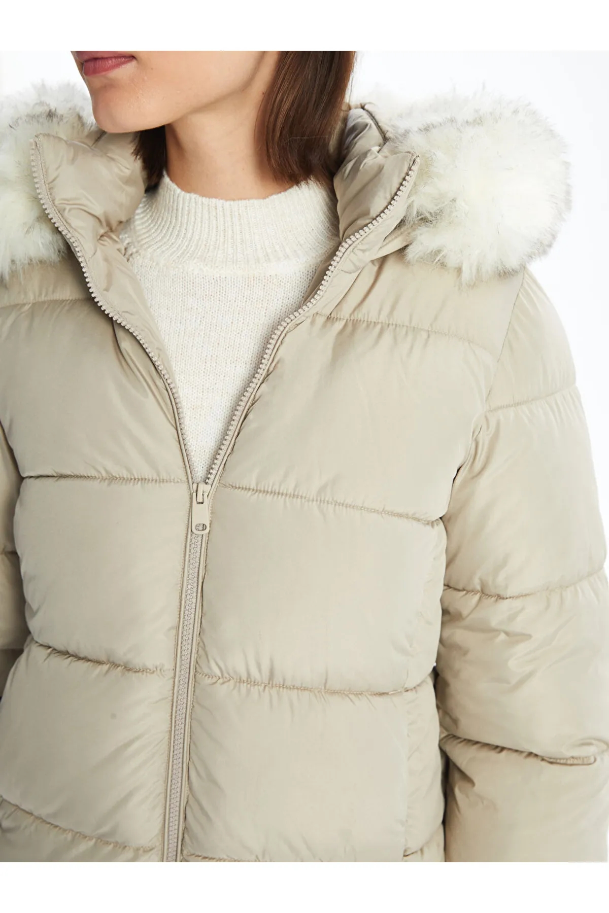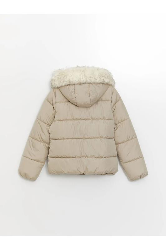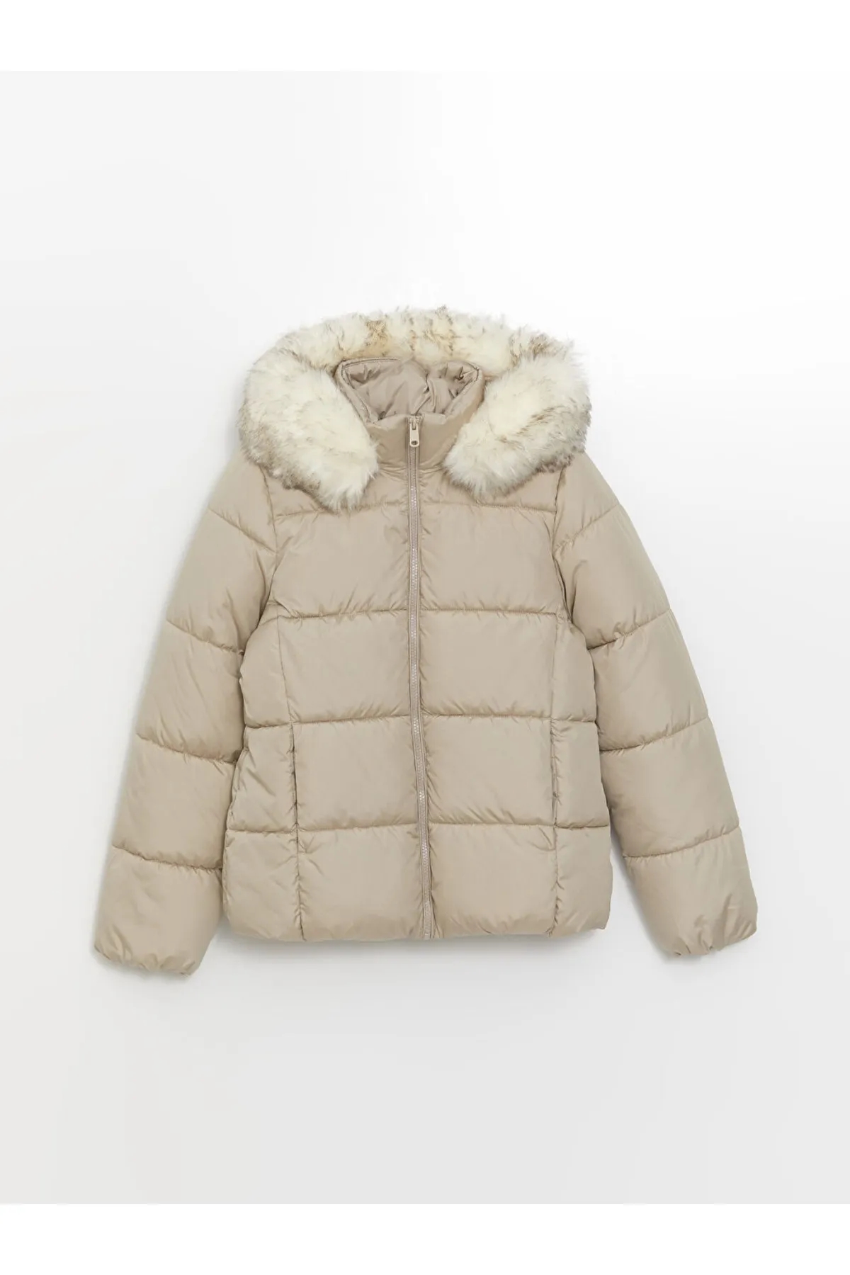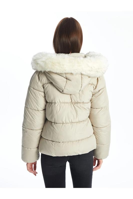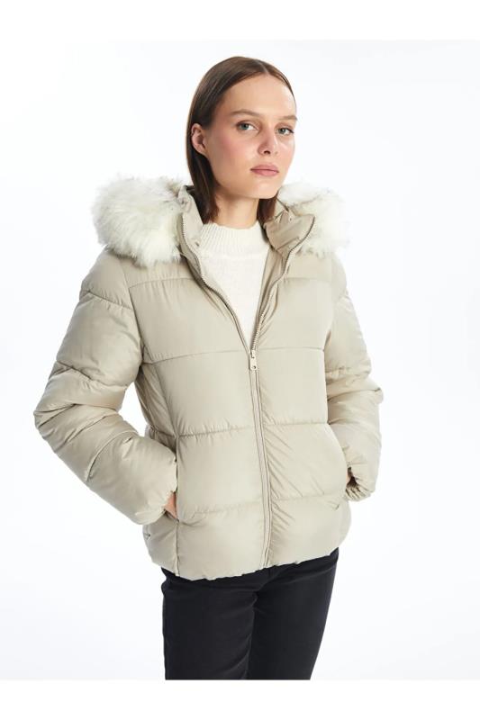 کاپشن پفی ساده کلاهدار LC Waikiki عاجی
