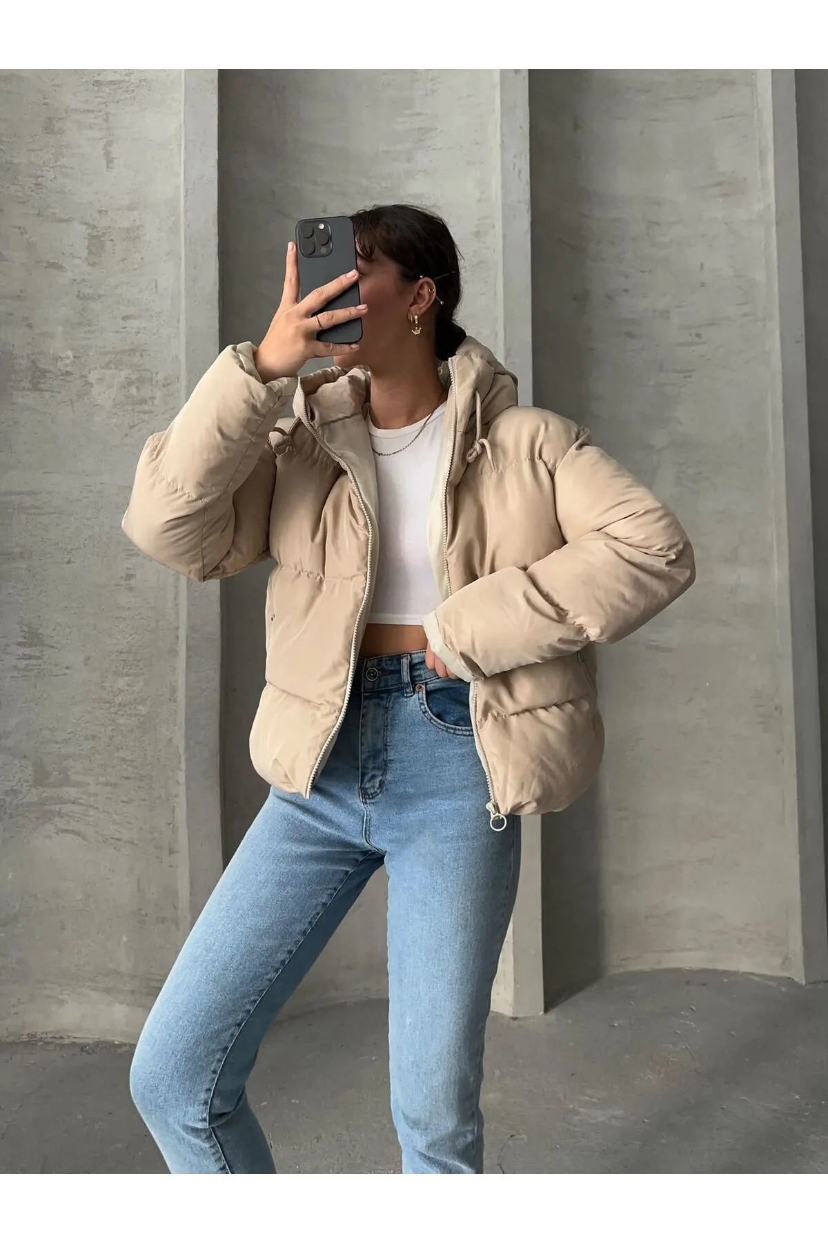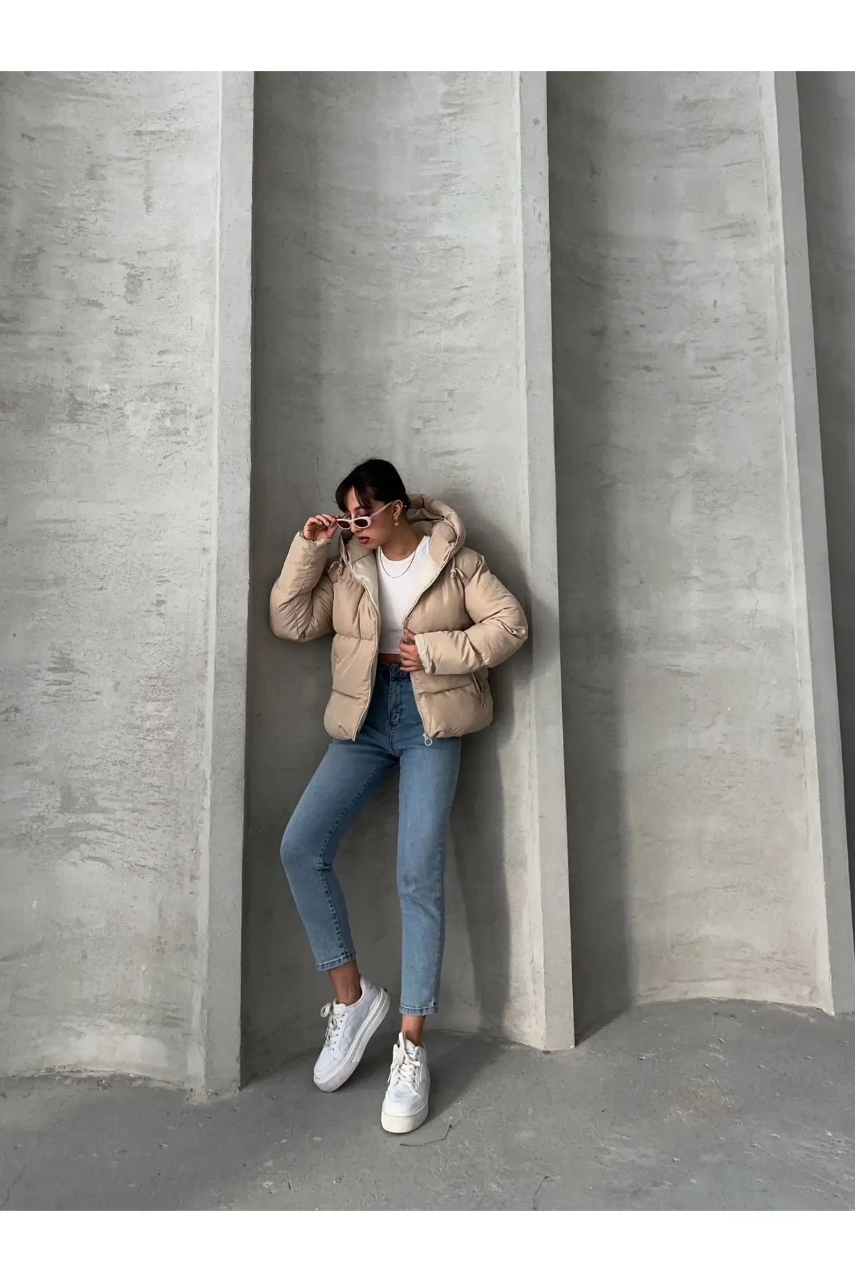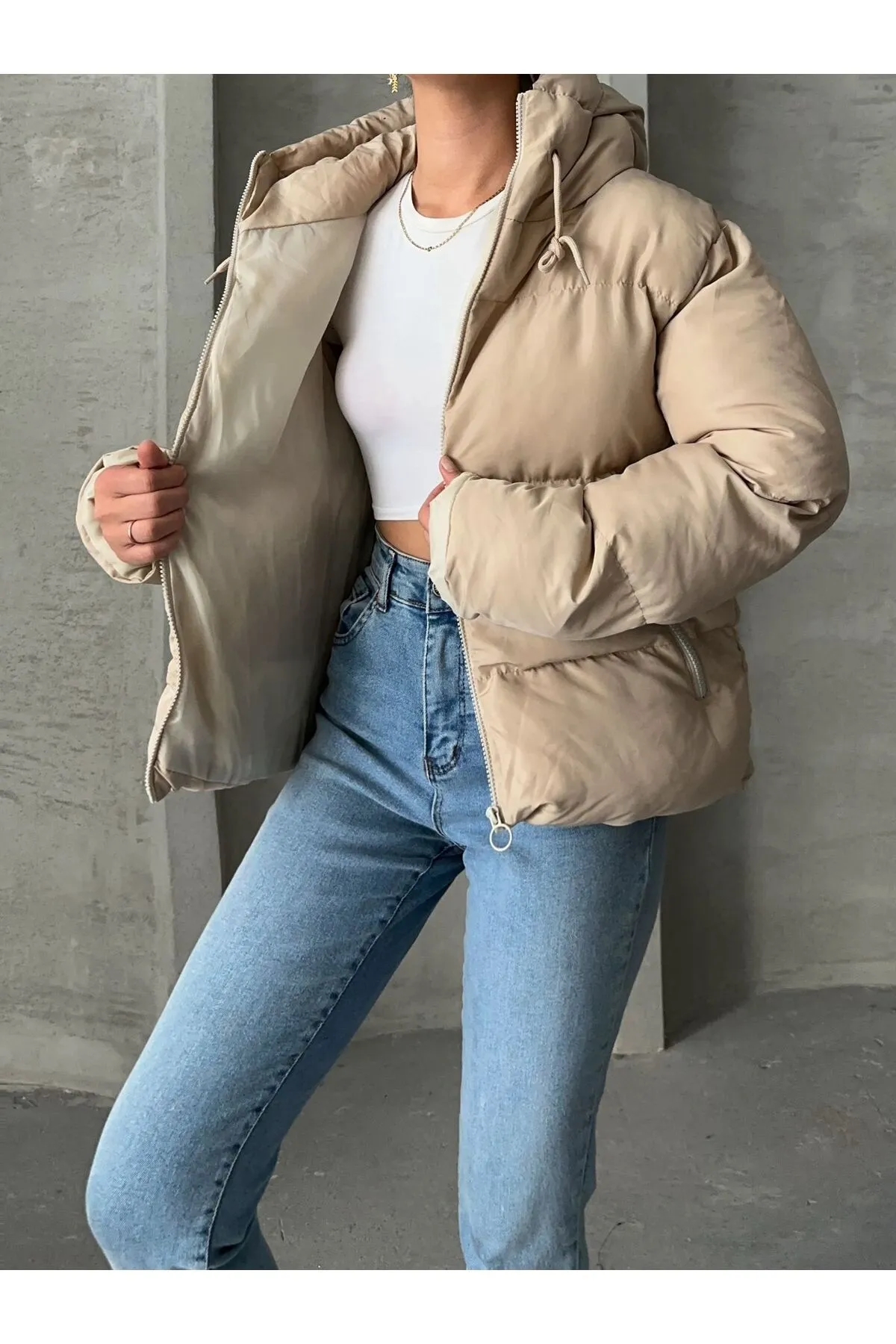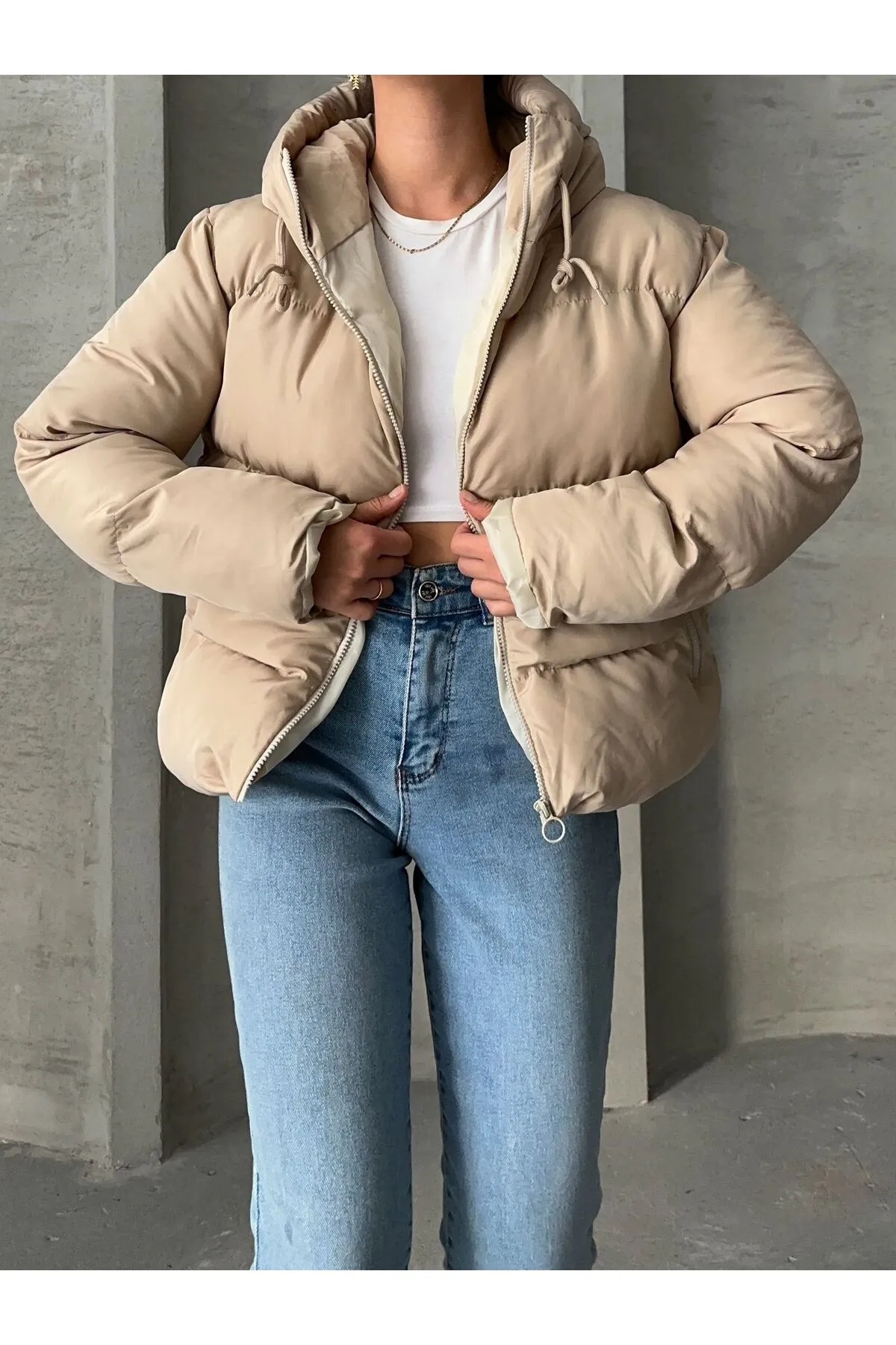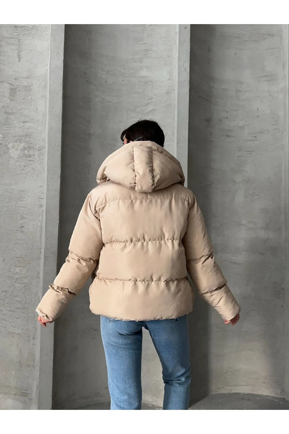 صفحه اصلی\همه کاپشن ها\کاپشن پفی کلاهدار مشکی زنانه Ss برند MEECY بژ