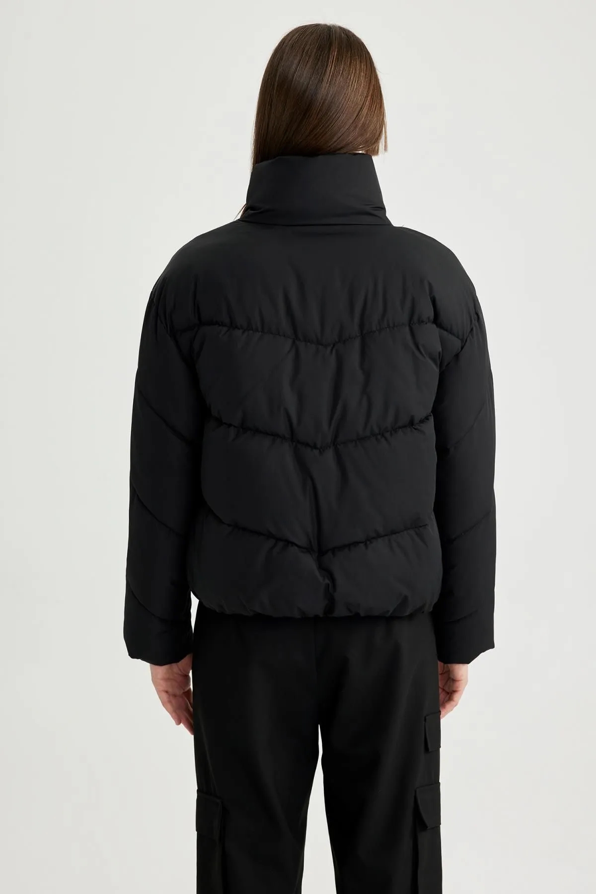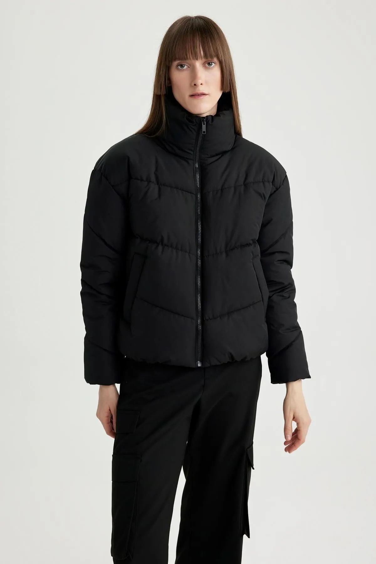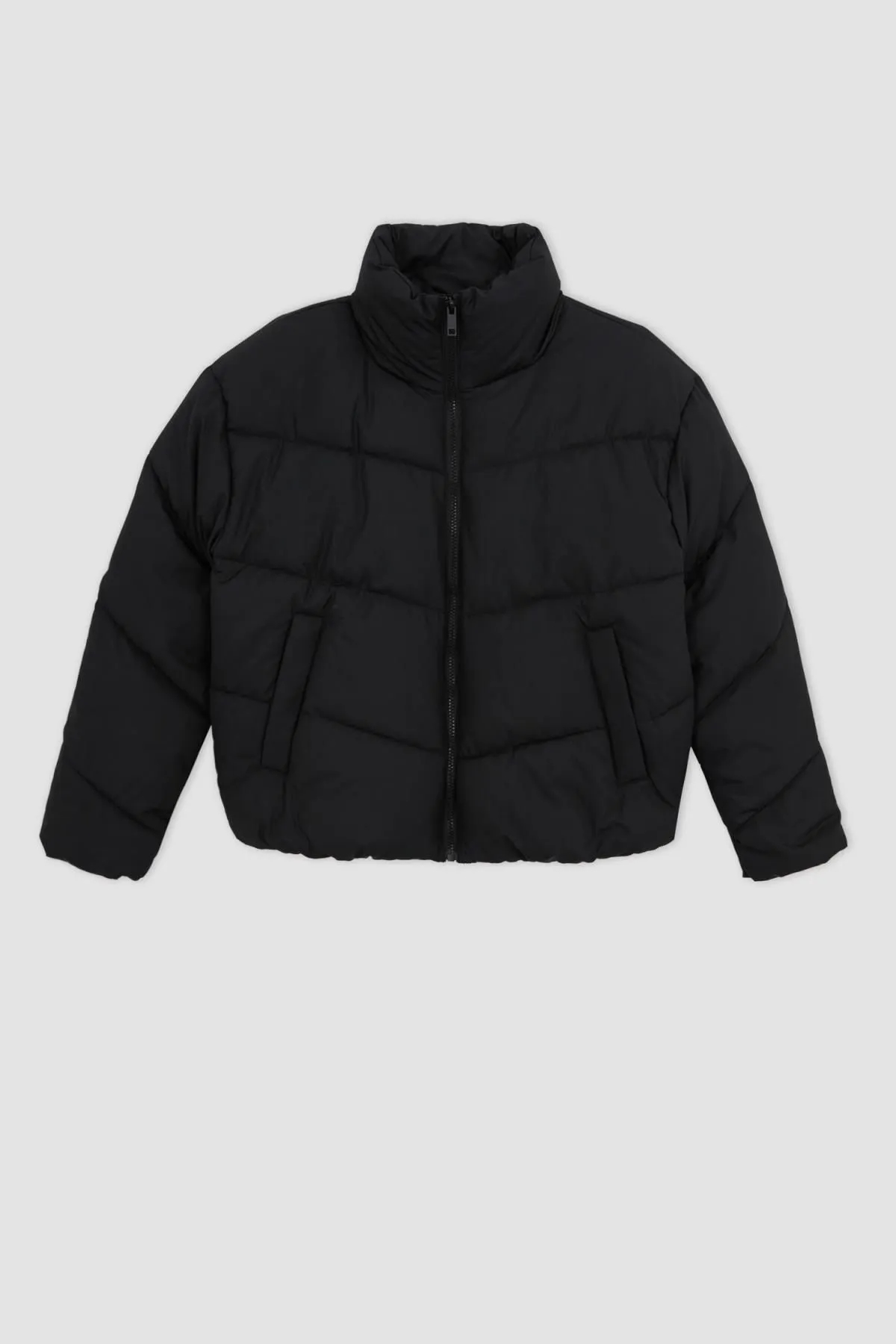 کاپشن پفی یقه ایستاده Relax Fit ضد آب Defacto مشکی