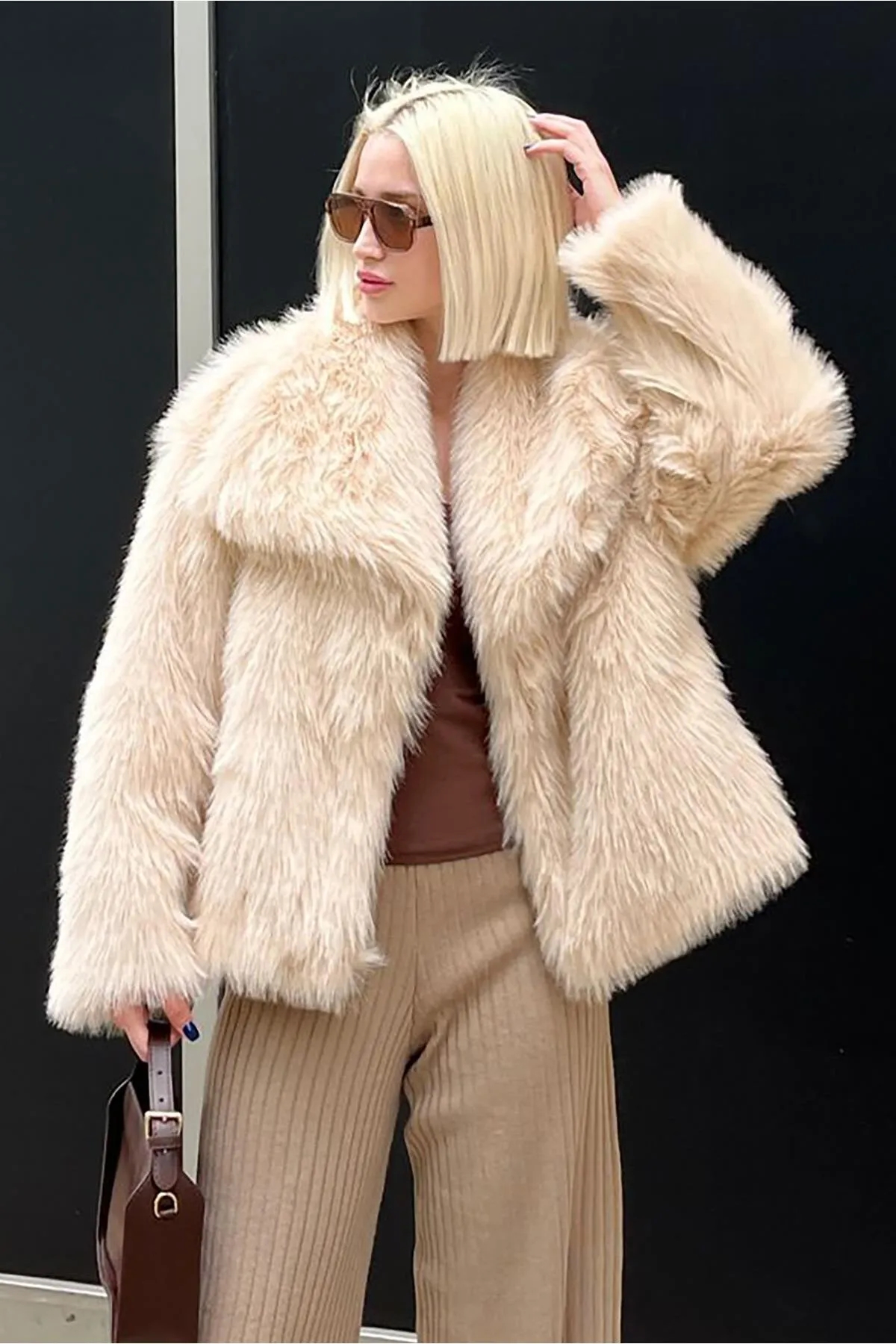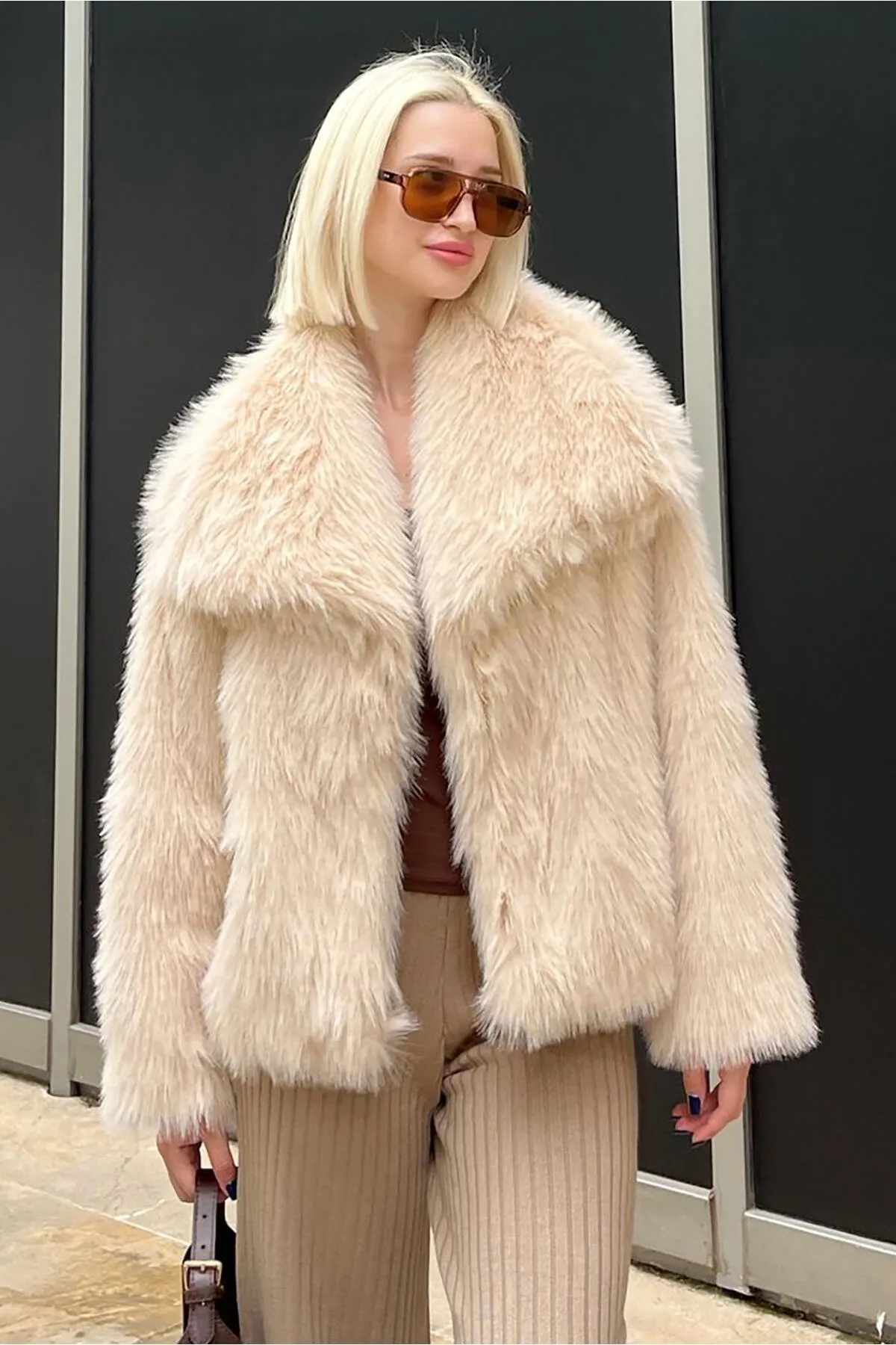 صفحه اصلی\همه کاپشن ها\کت خزدار بافت نرم زنانه MG2204 Madmext بژ