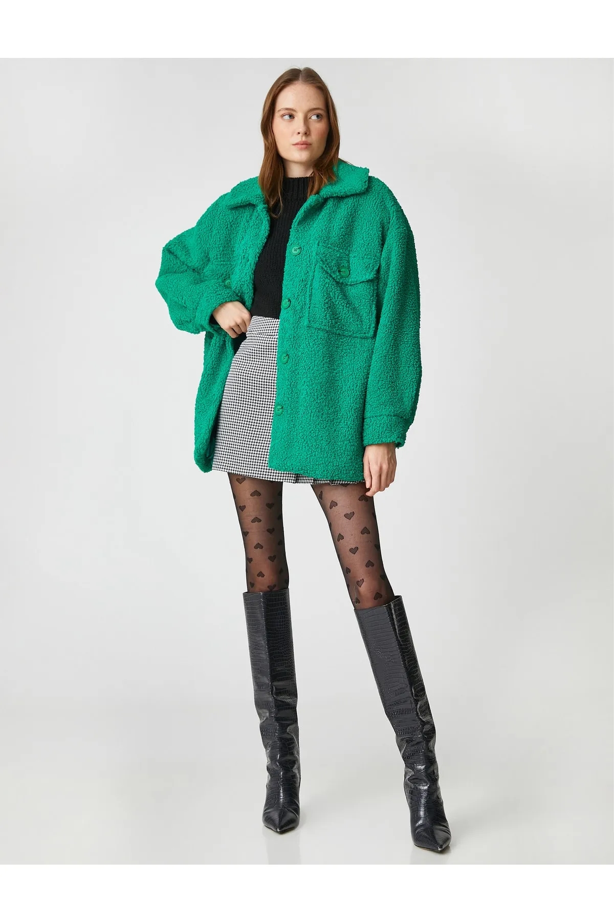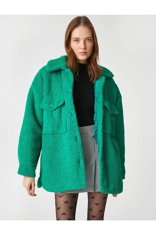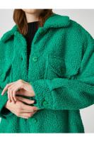 ژاکت مخملی بزرگ با جیب Koton زمردی