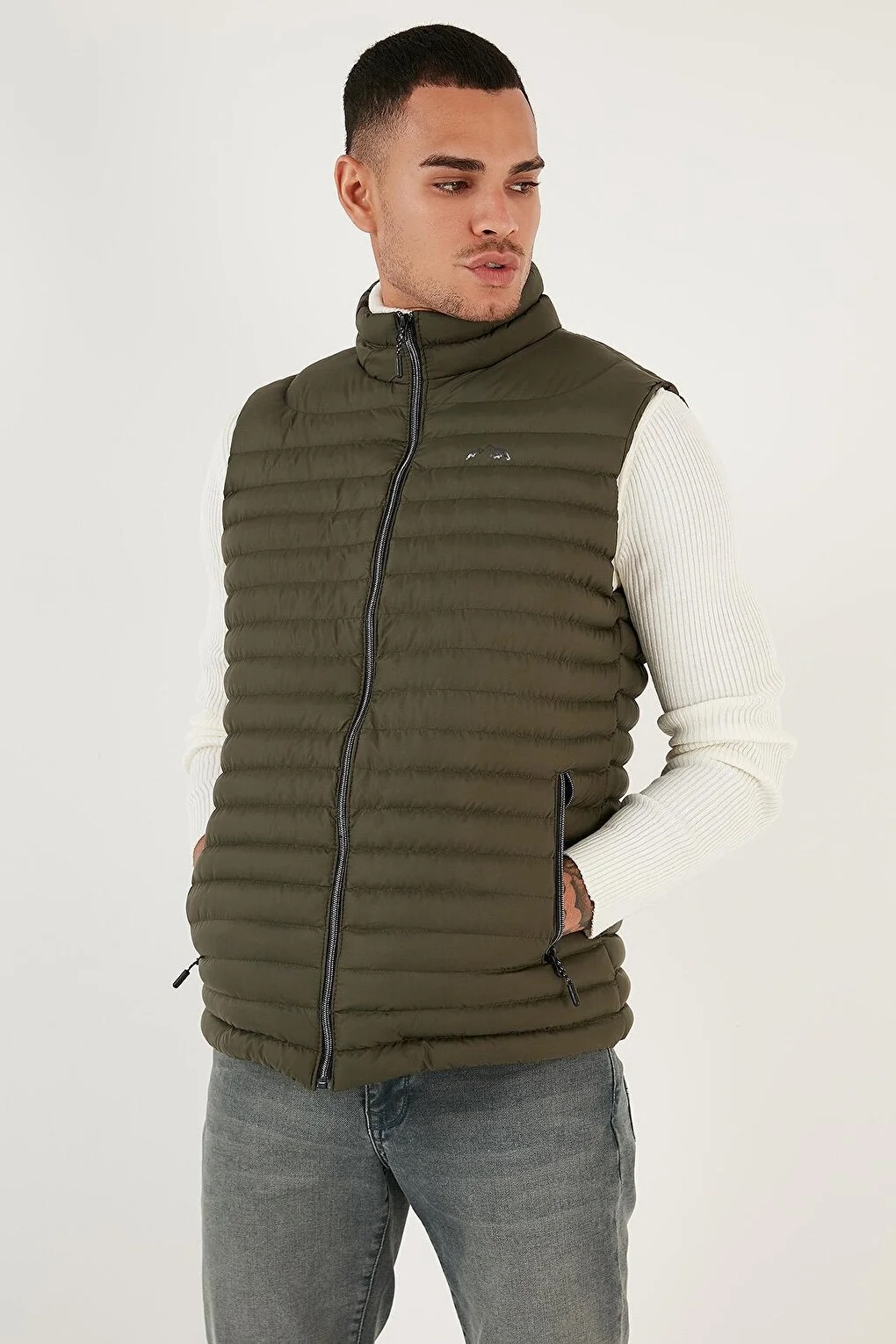 صفحه اصلی\همه جلیقه ها\جلیقه مردانه بادی یقه ایستاده مقاوم در برابر آب و باد Buratti خاکی
