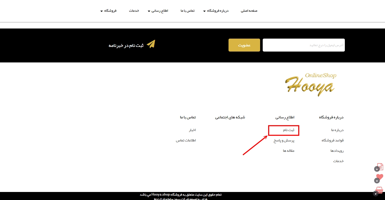 1- ابتدا مشتری در سایت ثبت نام می کند.