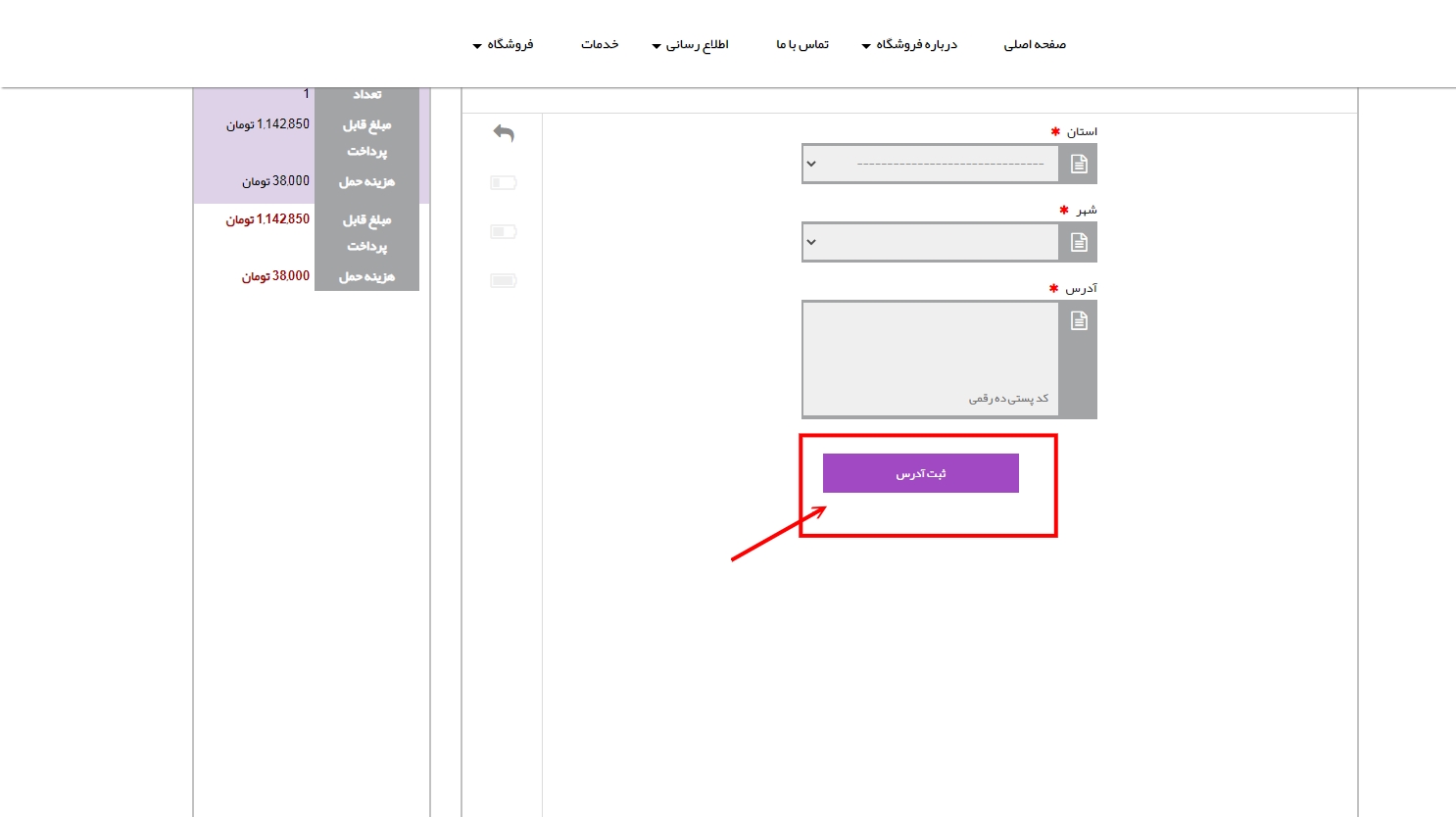 6- مشتری آدرسی که قرار است سفارش به آن پست سود را بصورت دقیق با درج کد پستی ده رقمی وارد می کند .