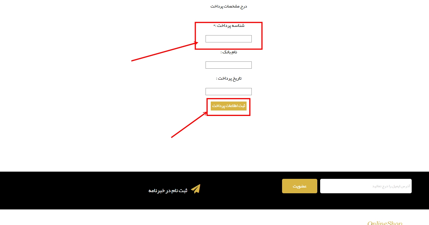 11- بعد از پرداخت مبلغ سفارش به شماره کارت درج شده در ذیل برگه پرداخت ، شماره تراکنش / پیگیری پرداختی را ثبت نمائید تا سفارش شما توسط واحد مالی هویا شاپ تایید شود و فرآیند ثبت آن آغاز شود.
